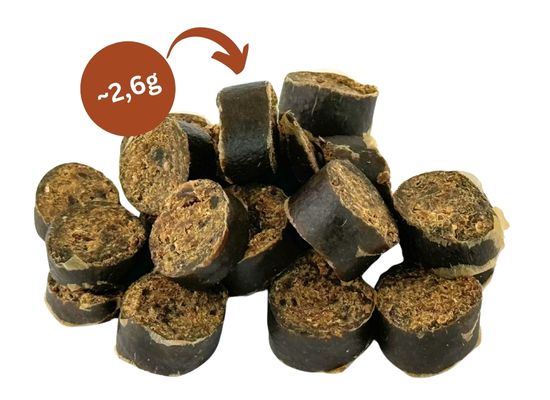 Fördern Sie die Gesundheit von der Haut und dem Fell Ihres Hundes mit diesem natürlichen Leckerbissen aus Rindfleisch mit Biotin, Hyaluronsäure, Postbiotika, Kurkuma und anderen wirkungsvollen natürlichen Inhaltsstoffen.