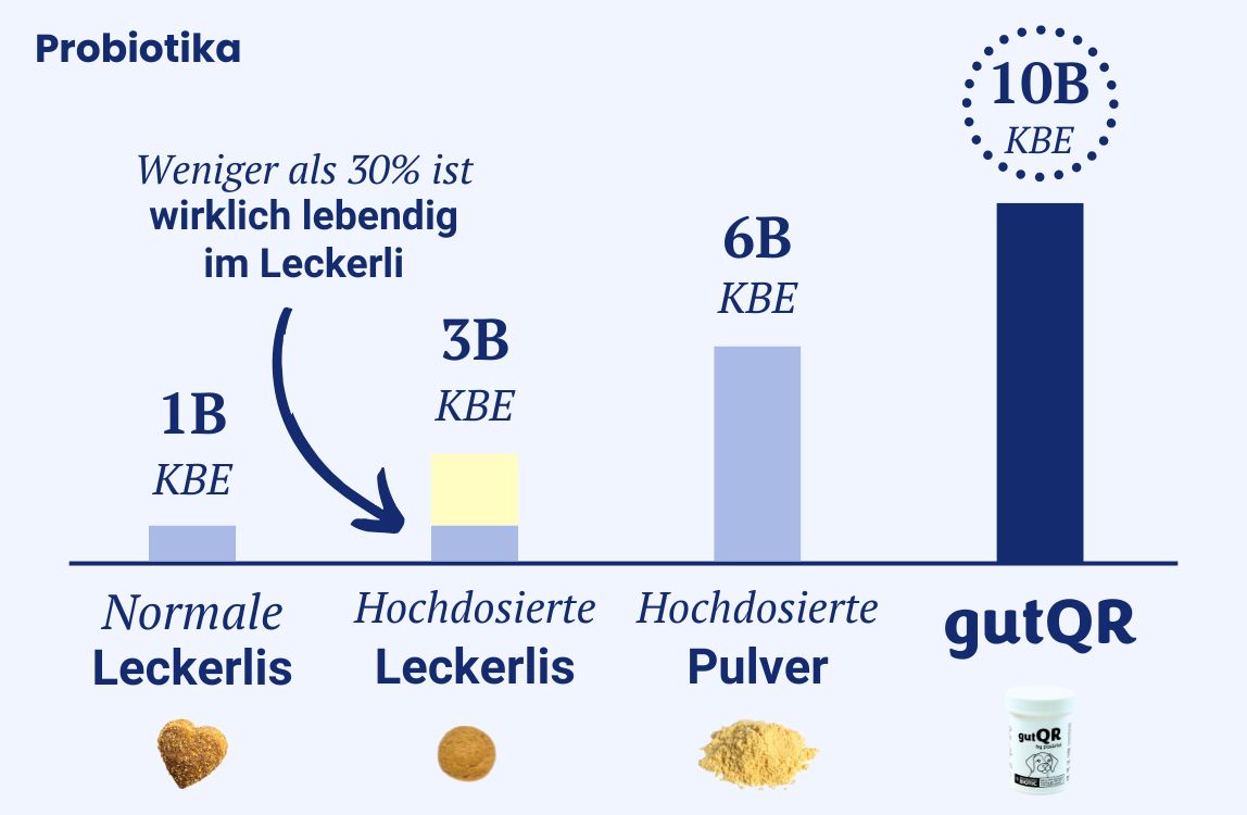 gutQR ist ein Präbiotika/Probiotika/Postbiotika-Komplex mit klinisch bewährten Inhaltsstoffen (24+ klinische Studien) für einen gesunden Darm, ein starkes Immunsystem und gesunde Haut Ihres Hundes.
